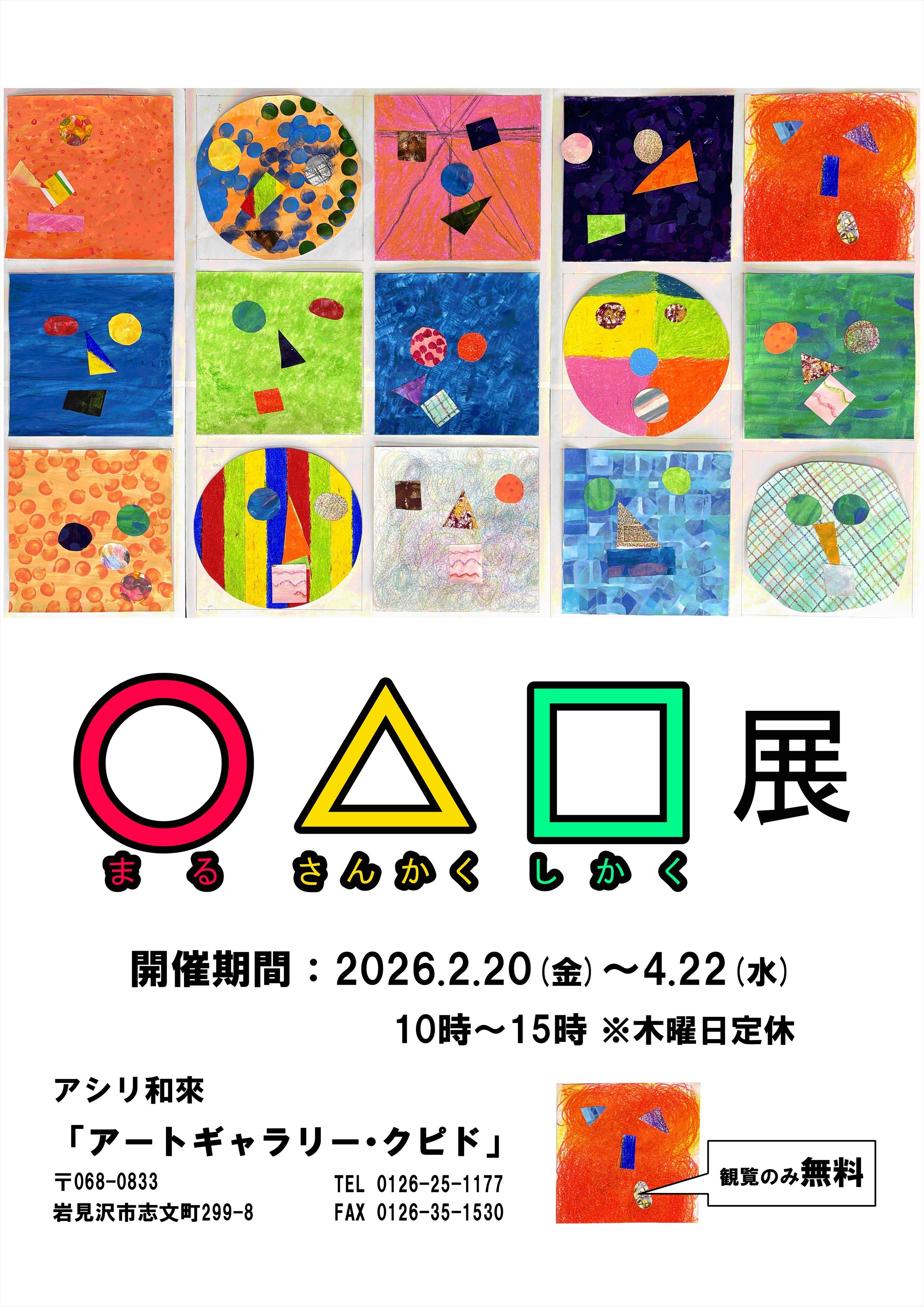 日常に当たり前のようにある〇と△と□絵を描く時の基本でもあるその形にフォーカスした展覧会が開催中です。今回は、クピド作家とパシオ作家の合同作品「福笑い」も展示されています。カラフルで楽しい世界に是非、足を運んでいただけたらと思います。開催期間:2026年2月20日(金)~2026年4月22日(水) ※木曜日定休日場所:アシリ和來「アートギャラリー・クピド」観覧のみ:無料